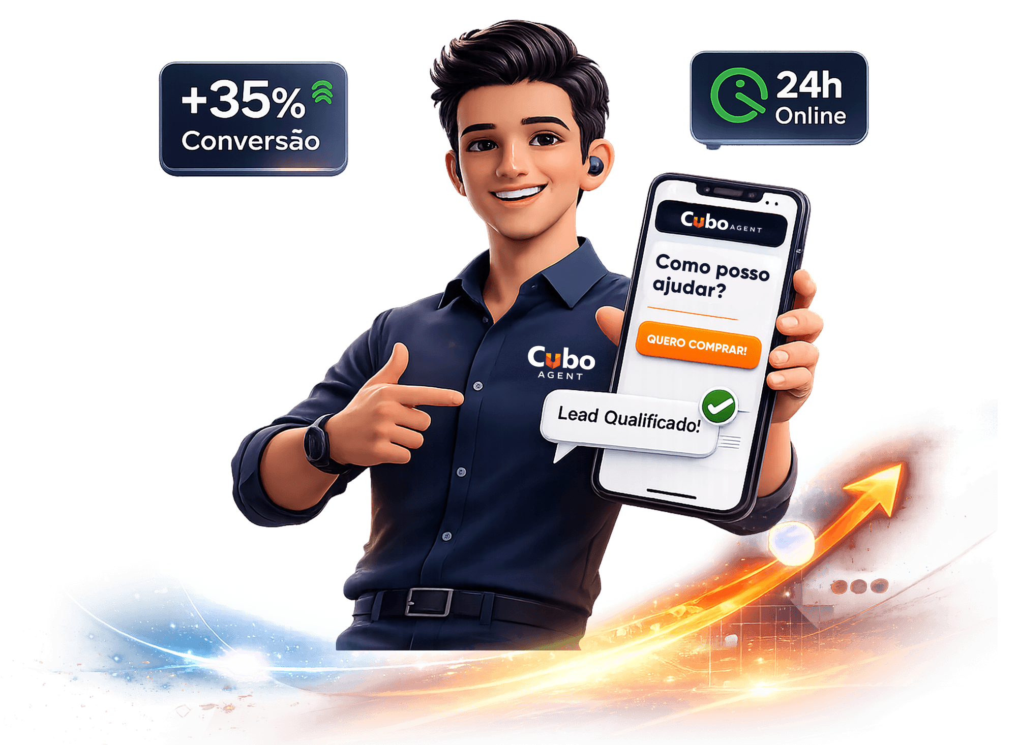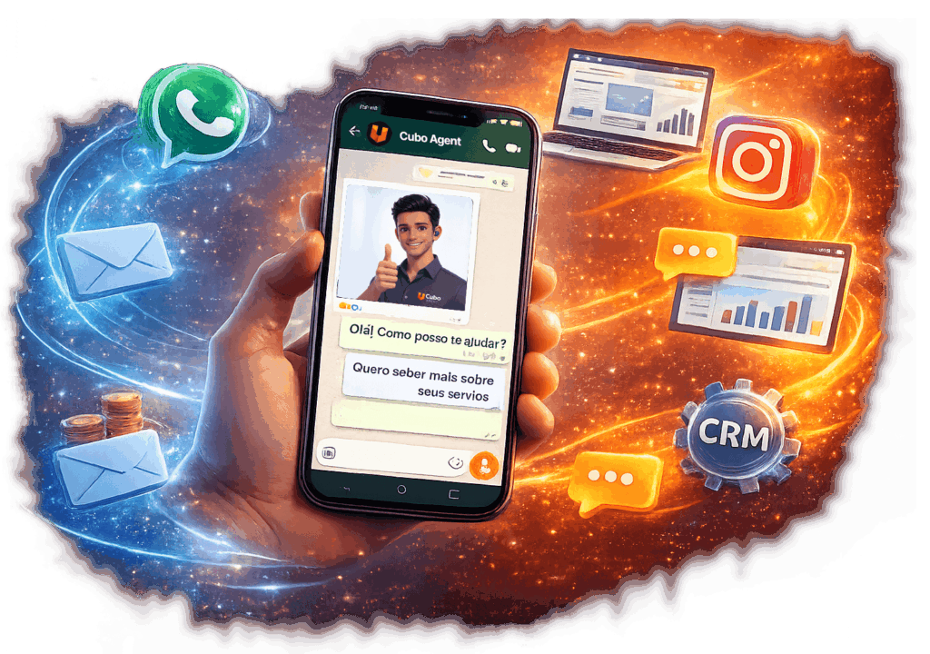 Os agentes do Cubo Agent podem ser implementados em: • WhatsApp • Sites e landing pages • Instagram e canais digitais • Pré vendas e vendas • Suporte e pós vendas